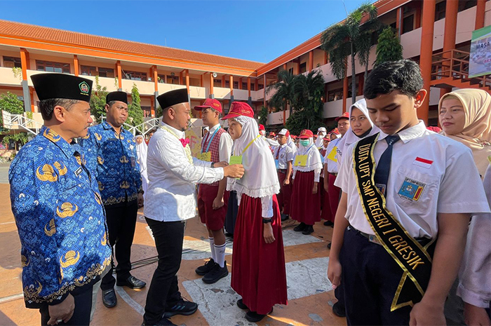Senin (17/7) pagi, Bupati Fandi Akhmad Yani secara simbolis membuka Masa Pengenalan Lingkungan Sekolah (MPLS) di UPT SMPN 1 Gresik. Di sekolah yang berlokasi di Jalan Jaksa Agung Suprapto itu teradapa 320 siswa baru dengan 10 rombel hasil Penerimaan Peserta Didik Baru (PPDB) 2023. Mereka tampak sangat antusias menyambut tahun ajaran baru.