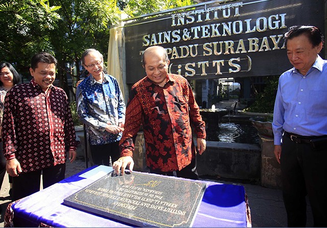 BERSAING KETAT: Ketua LL Dikti Wilayah VII Suprapto (dua dari kanan) meresmikan perubahan nama dan bentuk Institut Sains dan Teknologi Terpadu Surabaya kemarin. (Guslan Gumilang/Jawa Pos)