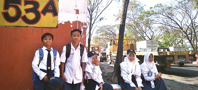 Samsudin pulang dari sekolahnya itu pada pukul 13.00. Hingga pukul 15.00, dia masih berada di Jalan Margomulyo No 53 A. ’’Masih sejam lagi baru sampai rumah nanti,” kata Samsudin. Ngos-ngosan. Untuk sampai rumah, setidaknya Samsudin harus menempuh jarak sekitar 5 kilometer.