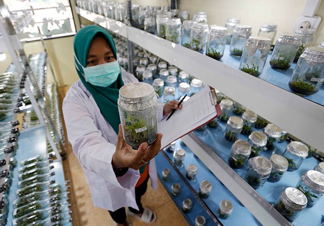 Dia melanjutkan, suhu dijaga 16–20 derajat Celsius. Jika mengalami gangguan pada AC, warna bibit pohon pisang bisa berubah dengan cepat. Lab itu memiliki sekitar 100 bibit yang sedang dikembangkan. ”Memang sementara ini bibit anggrek masih yang paling banyak. Jumlahnya ribuan,” sambung Anis. Seluruh eksplan (calon bibit, Red) ditempatkan di dalam botol yang tertata rapi di lab inkubasi.