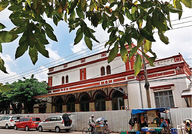 TAK BISA DIBONGKAR SEMBARANGAN: Tampak depan Stasiun Surabaya Kota. Revitalisasi bangunan cagar budaya tersebut masih berlangsung. (Ahmad Khusaini/Jawa Pos)