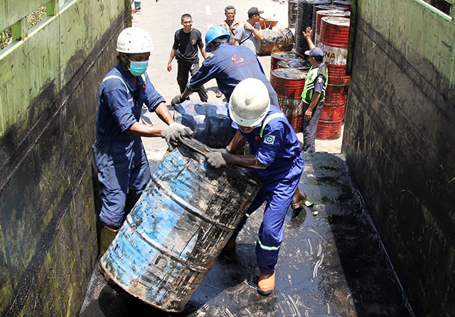 Lantas, tong yang sudah terisi dipindahkan ke lokasi yang lebih aman. Yakni, di gudang penyimpanan salah satu perusahaan transporter limbah di Surabaya sambil menunggu adanya keputusan dari ESDM dan pihak terkait soal penanganan minyak mentah tersebut. ”Kalau ditumpuk di sini, khawatirnya mengganggu ketertiban juga,” ujarnya.