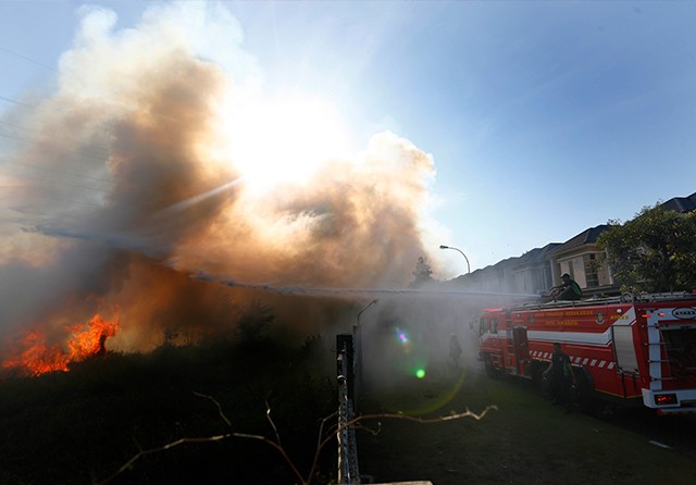 Sekitar lima unit mobil pemadam kebakaran ditambah beberapa unit PMK milik perumahan dikerahkan untuk memadamkan api tersebut. Petugas sedikit terhambat oleh sulitnya akses menuju lokasi kebakaran. Ditambah angin sangat kencang. ”Kebakaran lahan di belakang itu sudah sering. Pada musim kemarau tahun ini saja sudah dua kali,” kata pria yang tinggal di sana sejak 1991 itu.