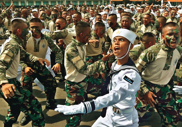 Sesekali, tubuh mereka berguling dan merayap cepat di atas rerumputan. Komando pun hanya diberikan melalui bahasa isyarat seperti layaknya prajurit yang tengah bertugas di medan tempur.