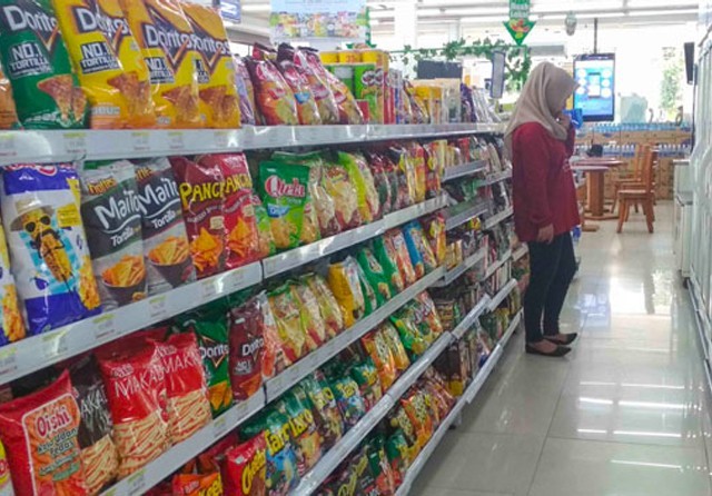 ATUR JAM BUKA: Warga berbelanja di sebuah minimarket. Batasan waktu bagi tempat usaha masih didiskusikan di internal pemkot. (Alfian Rizal/Jawa Pos)
