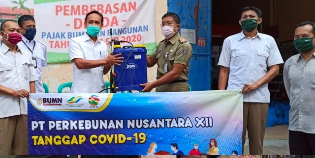 PT Perkebunan Nusantara XII membagikan paket sembako kepada warga miskin terdampak Covid-19 di sekitar kantor perusahaan di Kelurahan Krembangan, Surabaya, kemarin. Sembako itu diserahkan oleh Dirut PTPN XII M. Cholidi bersama sejumlah karyawan. ”Ratusan (paket) sembako, ratusan liter bahan disinfektan, termasuk alat semprot, serta ribuan masker kami bagikan kepada RW Krembangan Selatan,” katanya. (res/c11)