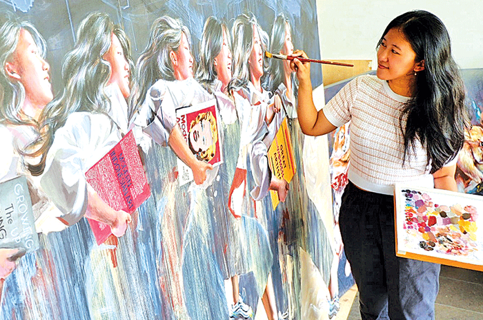 Begitu juga yang dilakukannya pada karya yang baru-baru ini ditampilkan di Artjog 2023. Lewat karya bertajuk Cashing My Crown, gadis 19 tahun tersebut melukis 15 figurnya yang tengah berproses untuk meraih mahkota. Karya pertamanya yang akhirnya lolos kurasi pesta seni rupa tahunan itu pun masuk nominasi Young Artist Award.