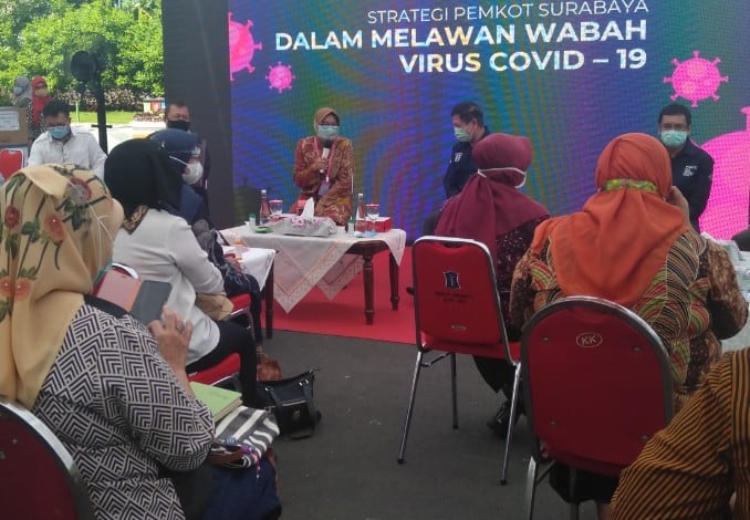 JawaPos.com–Wali Kota Surabaya Tri Rismaharini menggelar acara pengarahan kepada direktur rumah sakit dan puskesmas se Surabaya di Balai Kota Surabaya pada Rabu (1/7).