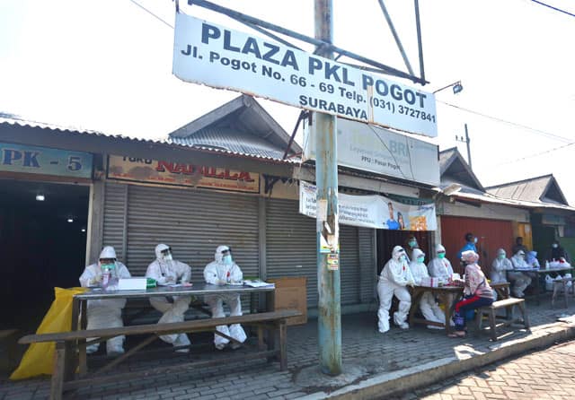 ”Kalau seluruh penjual sayur-mayur atau kebutuhan pokok lain, pada kegiatan pertama sudah di-rapid test. Hasilnya, beberapa pedagang berstatus reaktif. Namun, mereka telah diobati. Sehingga seluruh pedagang bahan baku berstatus negatif. Dan tidak perlu kembali di-rapid,” jelas Camat Kenjeran Henny Indriaty di Pasar Pogot kemarin.