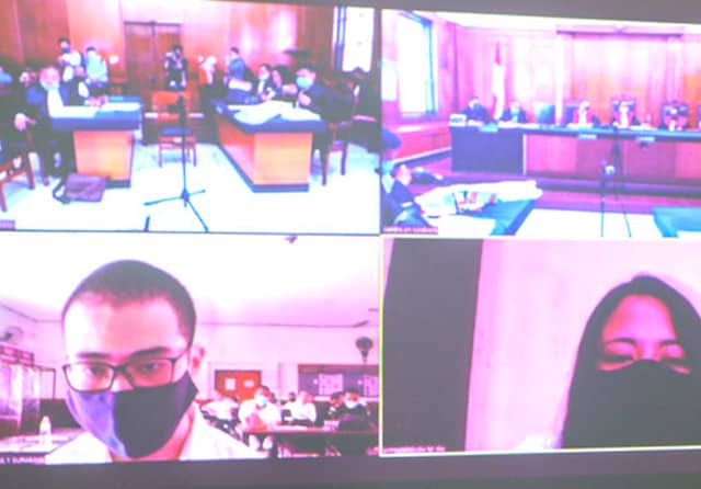 TERKAIT: William (kiri) dan dokter Irma saat sidang telekonferensi, Rabu (2/9). (Dimas Maulana/Jawa Pos)