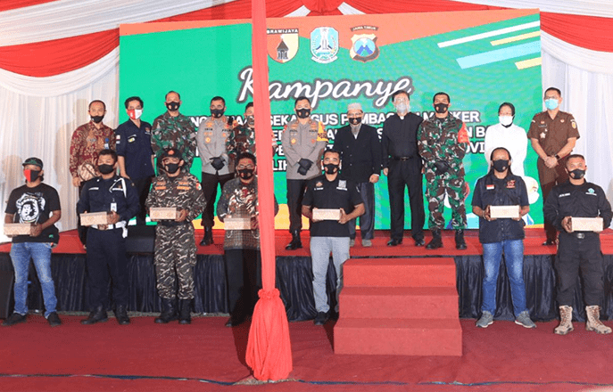 Sementara itu, Kapolda Jawa Timur Irjen Pol Mohammad Fadil Imran mengatakan, kegiatan kampanye penggunaan serta pembagian masker tersebut merupakan bentuk inisiasi dan tindak lanjut dari arahan Presiden terkait penegakan disipilin untuk menurunkan angka terkonfirmasi positif Covid-19.