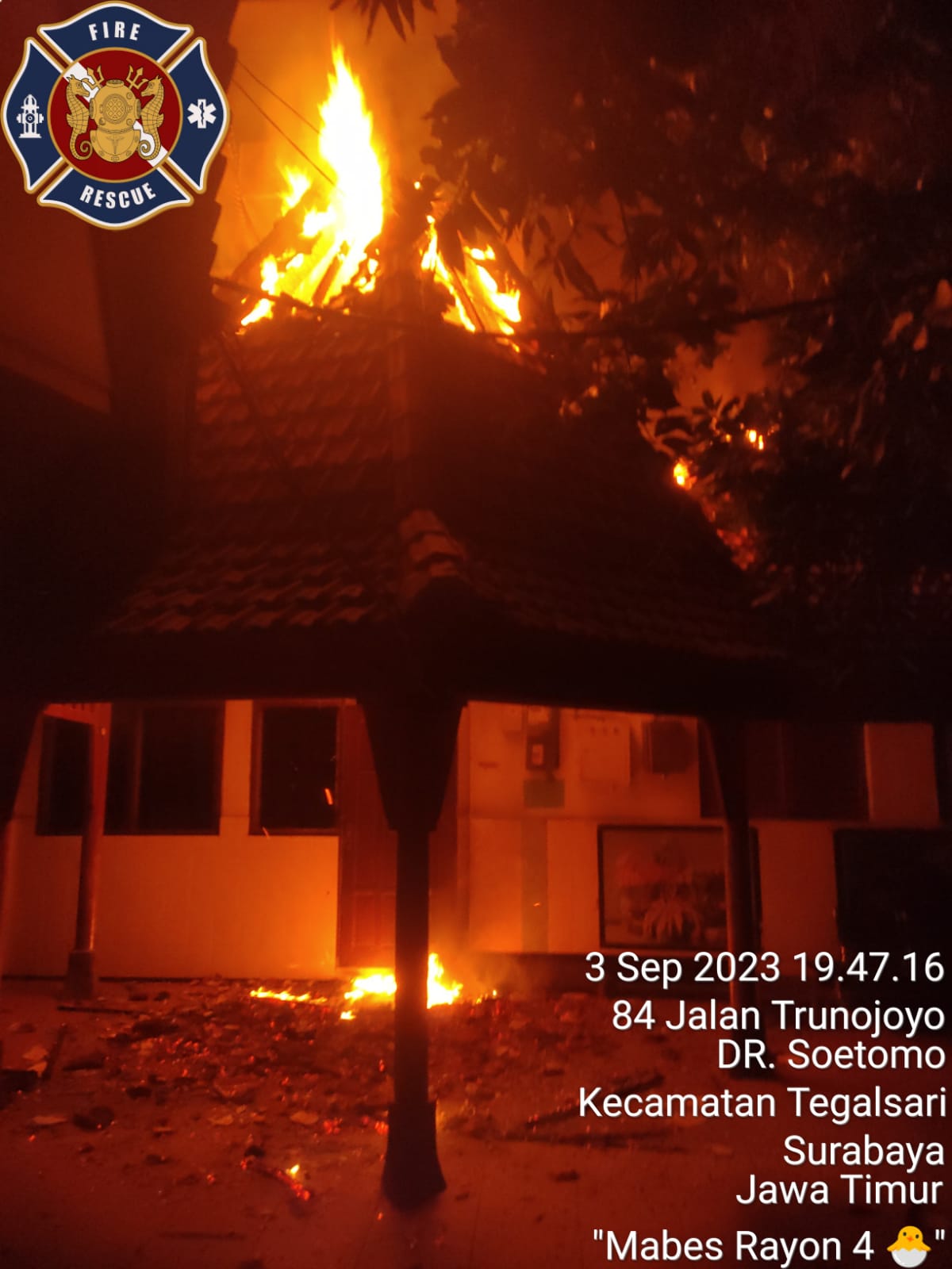 Sekolah Dasar Negeri (SDN) Dr Soetomo V yang berlokasi di Jalan Trunojoyo No.84, Tegalsari, Surabaya kebakaran pada Minggu malam (3/9).