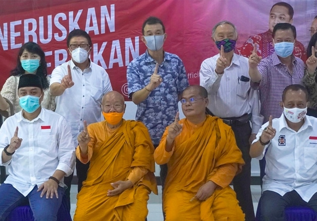 Hal itu tampak dalam pertemuan antara tokoh umat Buddha dan Vihara se-Surabaya dengan Eri Cahyadi bersama calon wakil wali kota Armuji di Panjang Jiwo Permai, Tenggilis Mejoyo, Senin (12/10). Tokoh-tokoh Buddha Surabaya yang hadir antara lain Ketua Yayasan DBC Irwan Pontoh, Ketua Pembina DBC Y.M Viriyanadi Mahathera, hingga Ketua Vihara Budhayana Surabaya (VBS) Ing Wibisono.