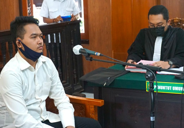 MENGAKU SALAH: Gilang menjalani sidang di PN Surabaya, Senin (21/12). (Lugas Wicaksono/Jawa Pos)
