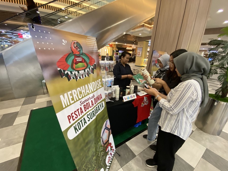 Suporter bola, masyarakat, maupun turis mancanegara bisa membeli produk karya UMKM di berbagai pusat perbelanjaan hingga termina di Kota Surabaya.
