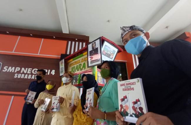Kepala SMPN 4 Surabaya Kelik Sachroen menjelaskan, dua buku tersebut merupakan launching ke-7 dan ke-8 yang sudah dilaksanakan. ”Buku pertama berjudul Wani Junjung Kota Surabaya, ditulis seluruh guru tentang upaya mengajar di tengah pandemi. Sementara untuk e-Book berjudul Surat untuk Wali Kota, ditulis 500 siswa. Namun hanya 40 yang terpilih,” terang Kelik.
