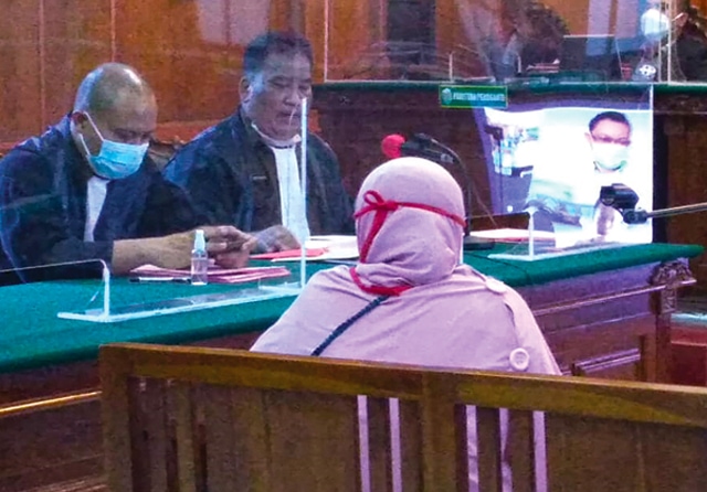 SALAH SASARAN: Sjaroh memberikan keterangan sebagai saksi dalam persidangan. (Lugas Wicaksono/Jawa Pos)