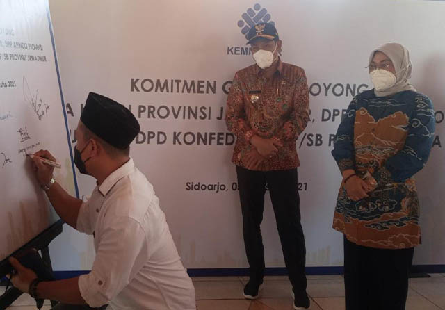 Hal itu diungkapkan Menteri Ketenagakerjaan (Menaker) Ida Fauziyah saat menyambangi Sidoarjo, Kamis (5/8). Ida menghadiri deklarasi gotong royong bersama Kadin Jatim, Apindo Jatim, dan pimpinan konfederasi SP/SB Jatim di Museum Mpu Tantular, Sidoarjo. Deklarasi itu menjadi komitmen bersama untuk mengatasi tantangan ketenagakerjaan di masa pandemi Covid-19.