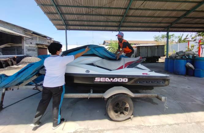 Jet Ski milik Mustafa yang diparkir di halaman Rupbasan. Rafika Yahya/JawaPos.com