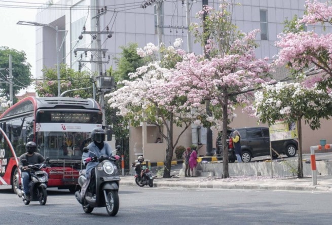 JawaPos.com–Bunga tabebuya mulai bermekaran di jalan-jalan Surabaya. Bunga tersebut ditanam di Surabaya sejak masa kepemimpinan Wali Kota Tri Rismaharini yang kini menjabat sebagai menteri sosial.