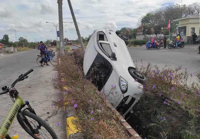 JawaPos.com- Kecelakaan tunggal kembali terjadi. Minggu pagi (12/9) sebuah mobil Daihatsu Ayla dengan nopol W 1526 AQ nyungsep di selokan kompleks Perumahan Pondok Permata Suci (PPS) 2, Kecamatan Manyar, Gresik. Tepatnya, di selokan depan klaster Permata Optima. Beruntung, tidak ada korban jiwa dalam kecelakaan tersebut.