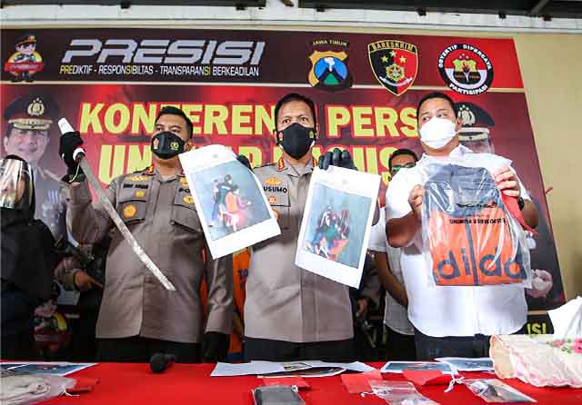 Dua pelaku yang berinisial AI dan MS diamankan petugas di rumah mereka di Desa Trosobo, Kecamatan Taman. Keduanya diringkus sehari pasca beraksi. Tepatnya setelah korban RM melapor. ’’Saat itu, sekitar pukul 03.00, korban melintas di jalan tersebut bersama pacarnya. Motor korban dipepet pelaku,’’ terang Kapolresta Sidoarjo Kombespol Kusumo Wahyu Bintoro saat gelar kasus di Mapolresta Sidoarjo, Senin (13/9)