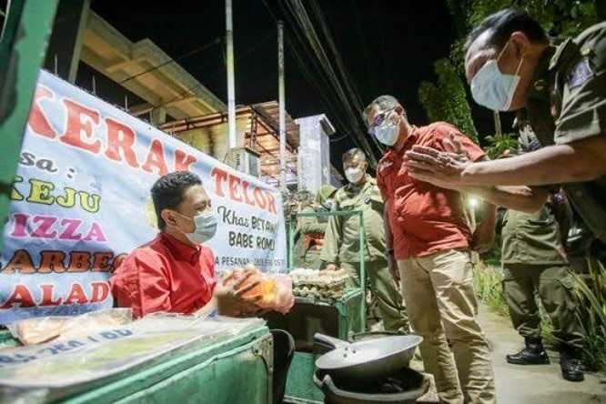 Salah satu PKL mendapat peringatan dari Satpol PP karena berjualan melebihi jam malam. Alfian Rizal/Jawa Pos