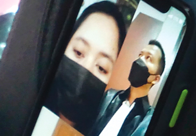 PIKIR-PIKIR: Terdakwa Bella mendengarkan majelis hakim membacakan putusan secara video call di PN Surabaya. (Lugas Wicaksono/Jawa Pos)