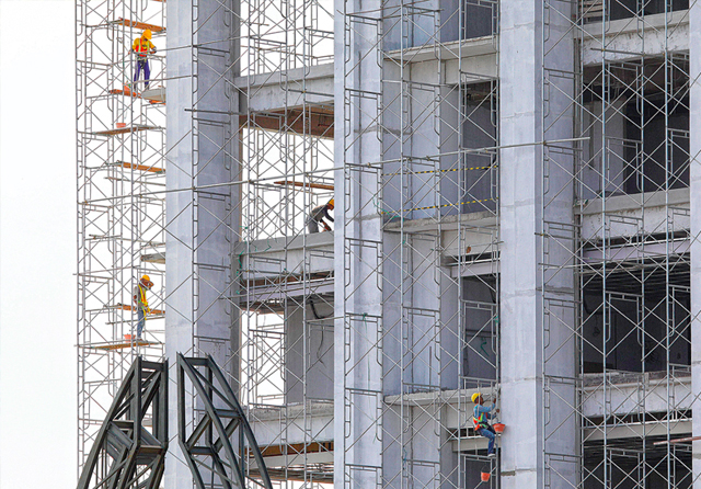 SEDANG DIBANGUN: Pembangunan apartemen di Surabaya sedang berlangsung. Menurut catatan pemkot, investasi industri properti cukup besar. (Angger Bondan/Jawa Pos)