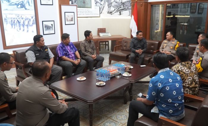 Kapolrestabes Kombespol Pasma Royce didampingi Wakapolrestabes dan PJU menerima kunjungan Bawaslu Kota Surabaya di Mapolrestabes Surabaya untuk meningkatkan sinergitas.