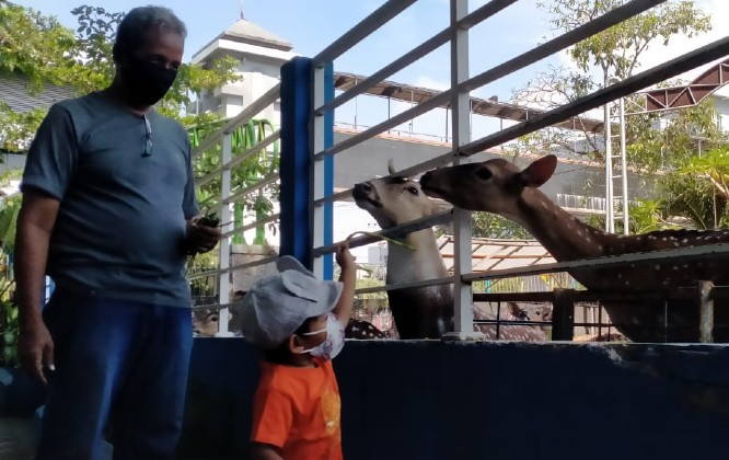 Pengunjung anak-anak memberi makan rusa di Taman Flora Kebun Bibit. Rafika Yahya/JawaPos.com