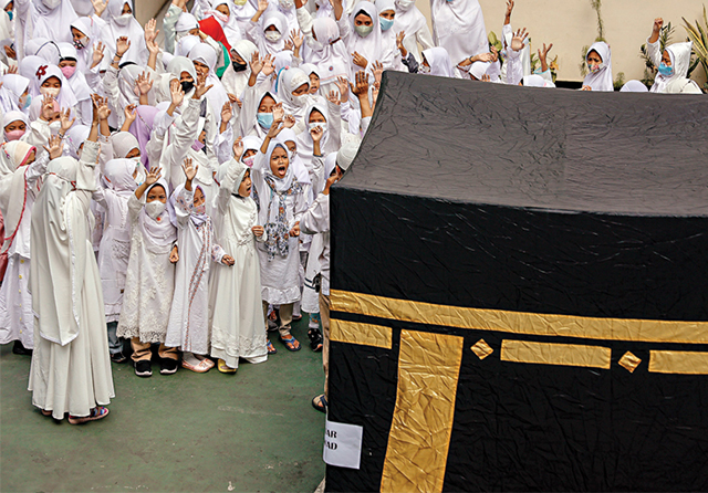 JawaPos.com– Ratusan siswa SD Muhammadiyah 6 Gadung, Surabaya, berbaris di lapangan sekolah dan bersiap mengelilingi miniatur Kakbah kemarin (6/4) pagi. Akhirnya mereka bisa melaksanakan manasik haji lagi setelah pandemi. Pihak sekolah berharap manasik haji itu bisa memberikan gambaran lebih jelas bagi anak-anak tentang pelaksanaan ibadah haji dan umrah.