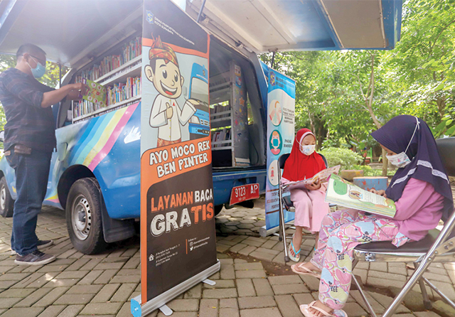 Perpustakaan keliling yang koleksi bukunya didominasi pengadaan pada 2018 itu dilengkapi lima unit kendaraan operasional. Namun, saat ini masih tiga unit kendaraan yang aktif beroperasi. ”Tiap weekend di Taman Harmoni, Taman Kebun Bibit Bratang, dan Taman Prestasi,” ungkapnya.
