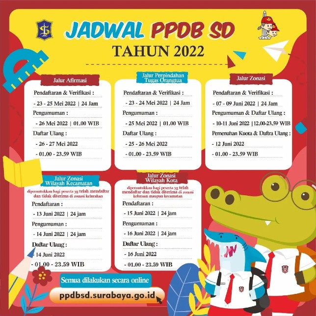 ”Untuk informasi lengkap mengenai tahap dan jadwal pendaftaran PPDB SMPN, masyarakat bisa mengakses website www.ppdb.surabaya.go.id. Sedangkan informasi untuk PPDB SDN, dapat diakses di laman ppdbsd.surabaya.go.id,” jelas Yusuf.