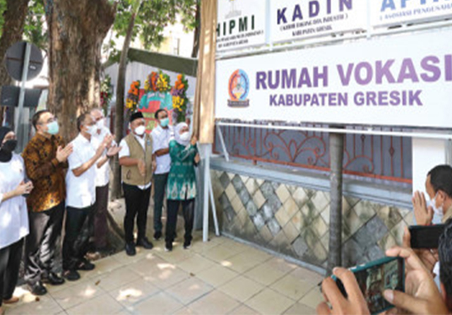 ’’Gresik ini kota industri sehingga dibutuhkan vokasi tertentu atau khusus. Apa yang sebetulnya dibutuhkan industri di Gresik bisa dibentuk di rumah vokasi ini sehingga tidak hanya menjadi penonton,” ucap Khofifah.