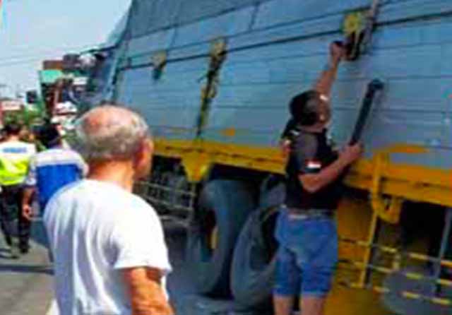 “Mobil dan motor yang menjadi korban sama-sama melaju dari arah utara ke selatan. Keduanya menabrak trailer saat jalan mundur itu. Sampai masuk ke badan jalan,” kata Abdul Kadir, salah seorang saksi.