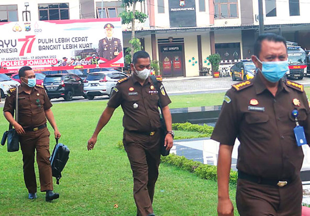 Beberapa orang berseragam jaksa juga terlihat keluar masuk ruang Satreskrim Polres Jombang. ’’Sekarang dalam pemeriksaan penyidik Polres Jombang,’’ ujar Asisten Pengawasan Kejati Jatim Edi Handoyo saat ditemui di Mapolres Jombang kemarin (18/8).