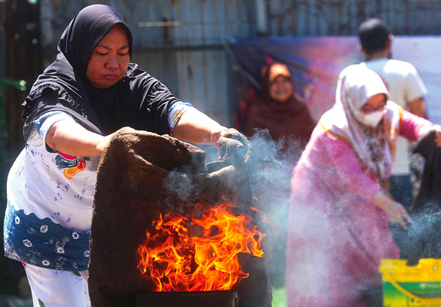 Namun, dia harus sigap untuk menutup tong yang didalamnya ada api yang berkobar-kobar dengan karung goni. Beruntung, api berhasil dipadamkan. ”Lega rasanya. Akhirnya, api bisa padam,” kata perempuan 54 tahun tersebut.