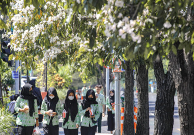 September membuat jalanan pusat kota berbeda. Bunga tabebuya warna putih, pink, dan kuning mendominasi. Tiga warna tabebuya itu mudah ditemukan di jalan. Salah satunya di frontage Ahmad Yani. ”Yang ungu masih jarang,’’ kata Kepala Dinas Lingkungan Hidup (DLH) Surabaya Agus Hebi Djuniantoro, Kamis (1/9).