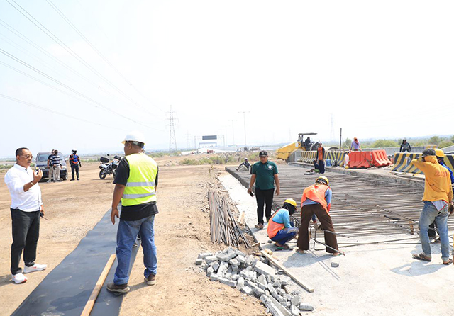 Jalan simpang sebidang itu dikerjakan beberapa rekanan. PT Margabumi Matraraya sebagai pengelola jalan tol, progresnya sekitar 54 persen. Kemudian, PT Pelindo mencapai 60 persen, dan PT Mitra Karya Multiguna sudah mencapai 48 persen.
