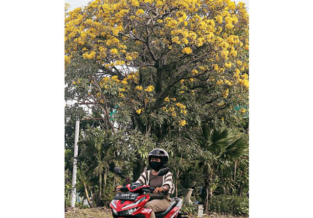 Meski ditanam di jalan protokol, akar pohon tidak merusak aspal jalan. ”Ada beberapa jenis pohon yang kalau ditanam di pinggir jalan bisa merusak trotoar atau bahkan aspal. Kalau tabebuya ini, akarnya aman, tidak merusak,” ungkapnya.