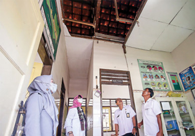 Kepala Dinkes (Kadinkes) Sidoarjo Fenny Apridawati bersama Kades Kedungsumur Muntolip dan Kepala Puskesmas Krembung Djoko Setijono datang langsung ke lokasi. Saat masuk, terlihat plafon di ruang tengah pustu itu bolong separo. Tampak semacam penyangga dari kayu darurat untuk menahan plafon. Sayangnya, penyangga itu tidak bertahan lama. Plafon tetap ambruk. ”Kami buat beberapa tahun lalu. Saya lihat sudah agak mau copot gitu,” kata Muntolip kemarin.