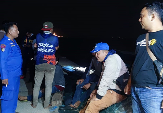 JawaPos.com- Niat hati menikmati akhir pekan dengan memancing bersama. Lima warga asal Lamongan menyewa perahu mesin di pesisir laut Dalegan, Kecamatan Panceng, Gresik.