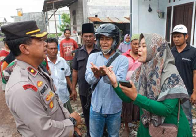 JawaPos.com= Kapolsek Asemrowo Kompol Hary Kurniawan bersama camat, Kamis (27/10) berkunjung ke Jalan Tambak Pring Baru RW 8. Surabaya. Tujuannya mengimbau agar warga tidak mendirikan bangunan. Sebab, lahan yang warga tempati masih berstatus sengketa. Namun, imbauan itu justru membuat warga naik pitam.