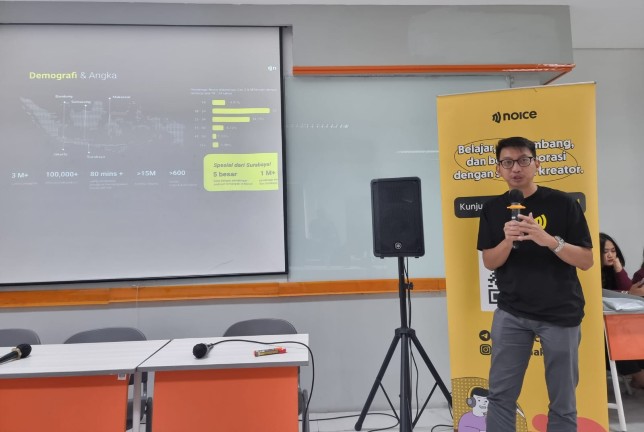 Rangkaian program itu dimulai dari Kelas Podcast di berbagai kota besar di tanah air dan akan ditutup dengan kompetisi podcast bagi para konten kreator. Konten terbaik berkesempatan untuk menjalin kontrak eksklusif dengan Noice dan mendapat berbagai dukungan lain.