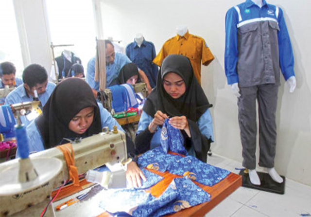 Suara mesin jahit terdengar saling bersahutan. Suara itu berasal dari sebuah rumah di Jalan Simo Sidomulyo V/5, Kecamatan Sukomanunggal, Surabaya. Saat Jawa Pos masuk, dua perempuan berkerudung tampak fokus mengerjakan seragam warna biru. Mereka adalah Syitha dan Devi, penyandang disabilitas tunarungu.