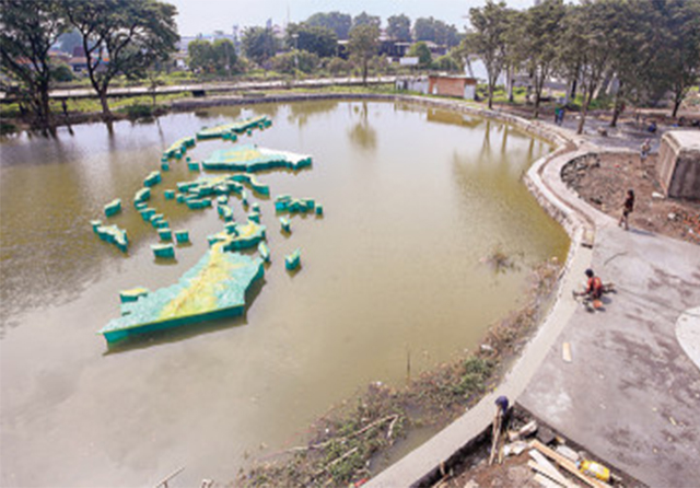 JawaPos.com- Satu lagi tetenger atau ikon baru Kota Delta Sidoarjo akan segera rampung dikerjakan, Yakni, miniatur kepulauan Indonesia di Taman Aloha Juanda tuntas terpasang. Kini, public sphere itu menyisakan pemasangan patung Ir Juanda setinggi 7 meter. Juga, penuntasan pemasangan perlengkapan flying fox.