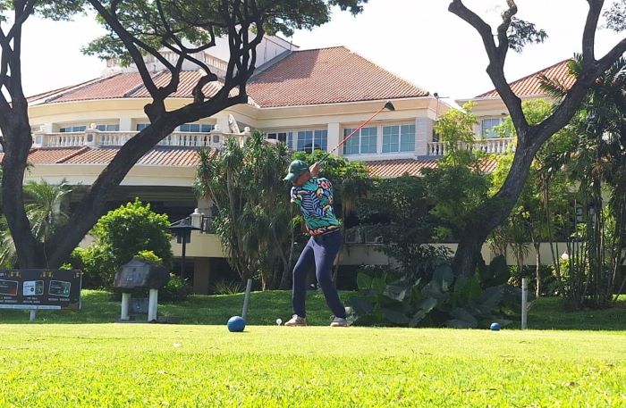 Ketua PGAI Surabaya AA Ngurah Henry Darmawan melakukan tee off di Bukit Darmo Golf (BDG), Surabaya.