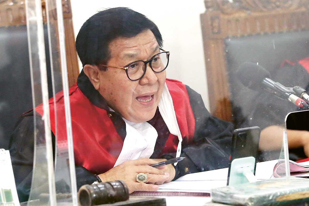 JADI SOROTAN: Hakim Erintuah Damanik saat sidang di PN Surabaya. (ROBERTUS RISKY/JAWA POS)
