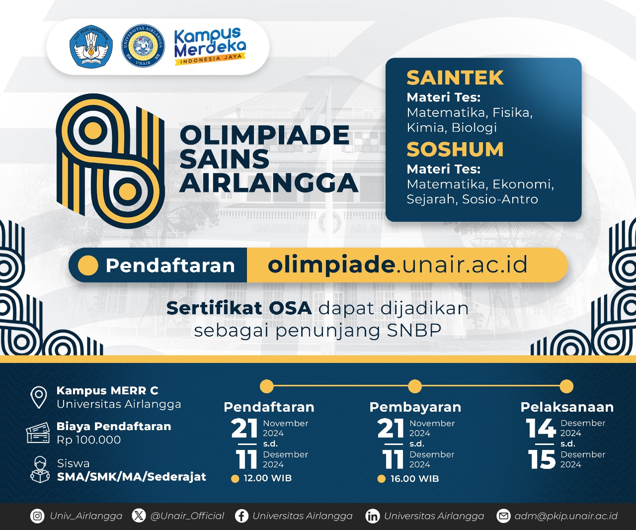 Informasi dan pendaftaran lebih lanjut dapat diakses di laman olimpiade.unair.ac.id.